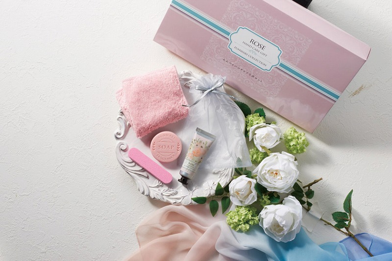 セット内容/ハンカチタオル・巾着・石鹸40g・ネイルファイル・ハンドクリーム25ml