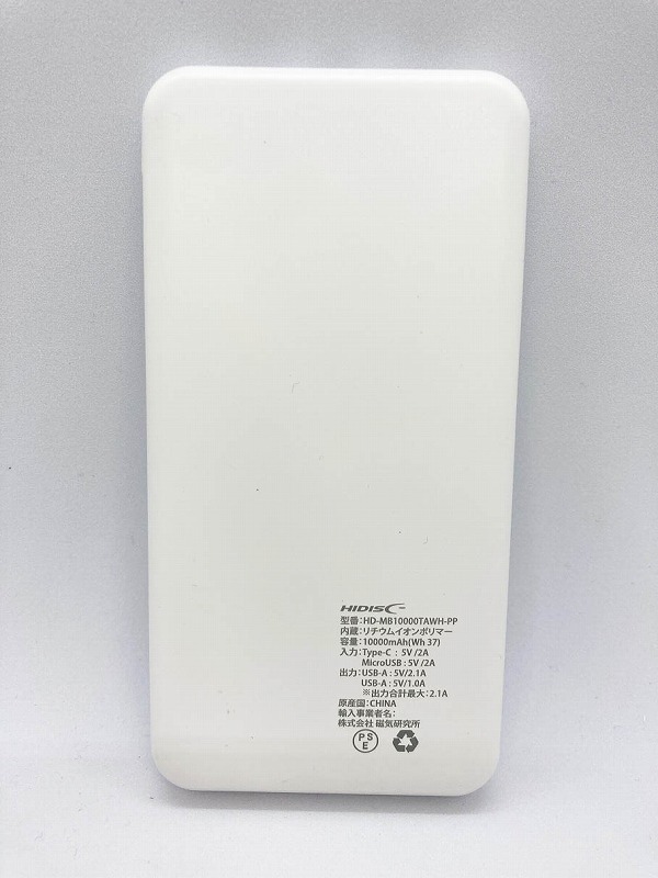 Type-C対応モバイルバッテリーチャージャー10000mAh(白)