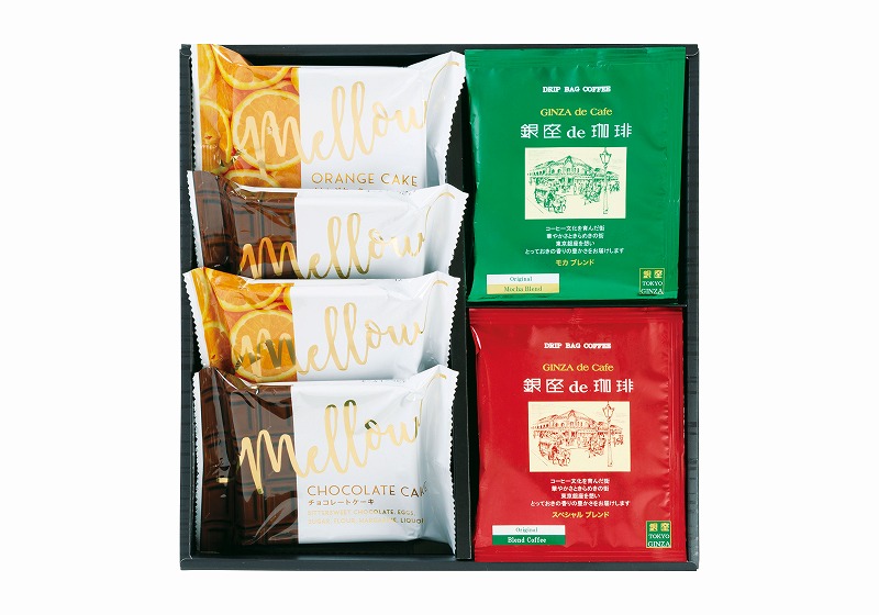 ドリップ式(スペシャルブレンド×4・モカブレンド×4)・チョコレートケーキ×2・マーマレードケーキ×2 [卵・乳成分・小麦]