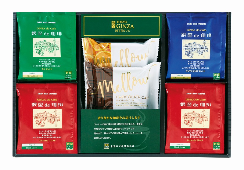 ドリップ式(スペシャルブレンド×8・キリマンジャロブレンド×4・モカブレンド×4)・チョコレートケーキ・マーマレードケーキ [卵・乳成分・小麦]