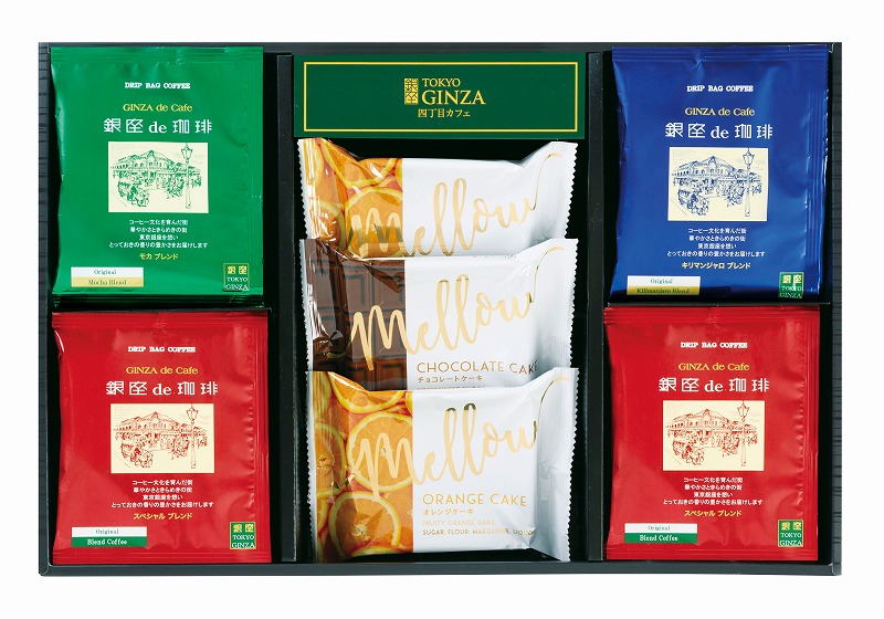 ドリップ式(スペシャルブレンド×8・キリマンジャロブレンド×4・モカブレンド×4)・チョコレートケーキ・マーマレードケーキ×2 [卵・乳成分・小麦]