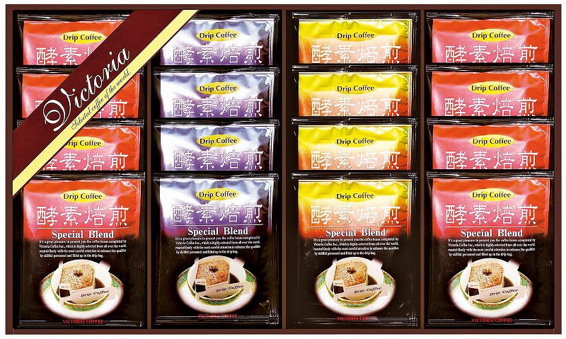 コーヒーがある、至福のひととき。 高品質なコーヒー豆と独自製法酵素焙煎によりそれぞれのコーヒーの特性を最大限に活かした焙煎技術による香り高い上品な旨味がバランスよく配分された3種類のドリップコーヒーをお楽しみください。 酵素焙煎コーヒーとは? 当社では玄米酵素を利用して独自製法により珈琲豆を活性化させる焙煎技術を取り入れています。そのためコーヒーが持つそれぞれの特性と旨みを最大限に引き出すことができ、おいしさをそのままドリップバッグに詰めてお届けします。 スペシャルブレンド(ゴールド) ブラジルでも貴重なイェローブルボンを主原料にして芳香な香りと味、しっかりとしたボディーのマニア向けコーヒー。 スペシャルブレンド(レッド) ブラジルの優秀なコーヒー農園から厳選したコーヒー豆を主原料にフレンチローストに仕上げた味と香りコクの三拍子そろったコーヒー。 スペシャルブレンド (シルバー) 世界の厳選したコーヒー農園から選りすぐりのコーヒー豆をアメリカンローストにして上品な香りと独特なコク、優雅な味に仕上げたコーヒー。