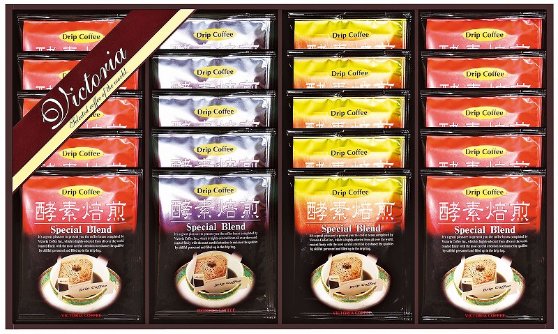 コーヒーがある、至福のひととき。 高品質なコーヒー豆と独自製法酵素焙煎によりそれぞれのコーヒーの特性を最大限に活かした焙煎技術による香り高い上品な旨味がバランスよく配分された3種類のドリップコーヒーをお楽しみください。 酵素焙煎コーヒーとは? 当社では玄米酵素を利用して独自製法により珈琲豆を活性化させる焙煎技術を取り入れています。そのためコーヒーが持つそれぞれの特性と旨みを最大限に引き出すことができ、おいしさをそのままドリップバッグに詰めてお届けします。 スペシャルブレンド(ゴールド) ブラジルでも貴重なイェローブルボンを主原料にして芳香な香りと味、しっかりとしたボディーのマニア向けコーヒー。 スペシャルブレンド(レッド) ブラジルの優秀なコーヒー農園から厳選したコーヒー豆を主原料にフレンチローストに仕上げた味と香りコクの三拍子そろったコーヒー。 スペシャルブレンド (シルバー) 世界の厳選したコーヒー農園から選りすぐりのコーヒー豆をアメリカンローストにして上品な香りと独特なコク、優雅な味に仕上げたコーヒー。