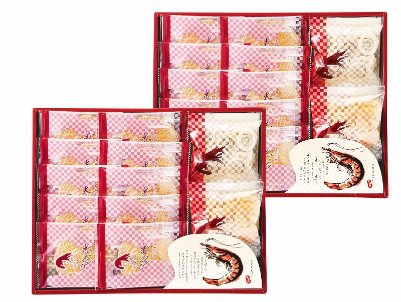 赤えびせんべい×20・えびせん(うずまき・えび松風)10g×各2 [小麦・えび]