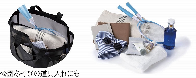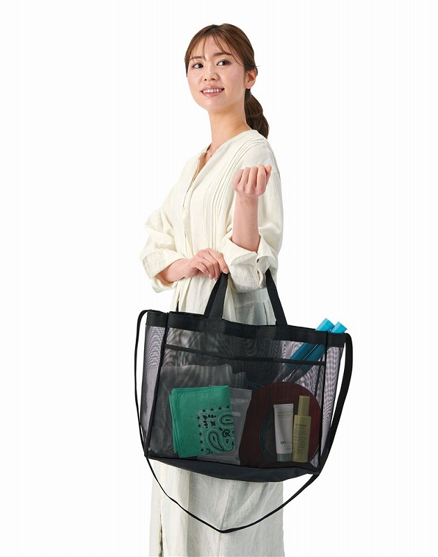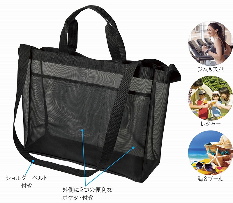 本体/ナイロン(メッシュ)・ポリエステル(PVCコーティング) 持ち手・ショルダーベルト/ポリプロピレン