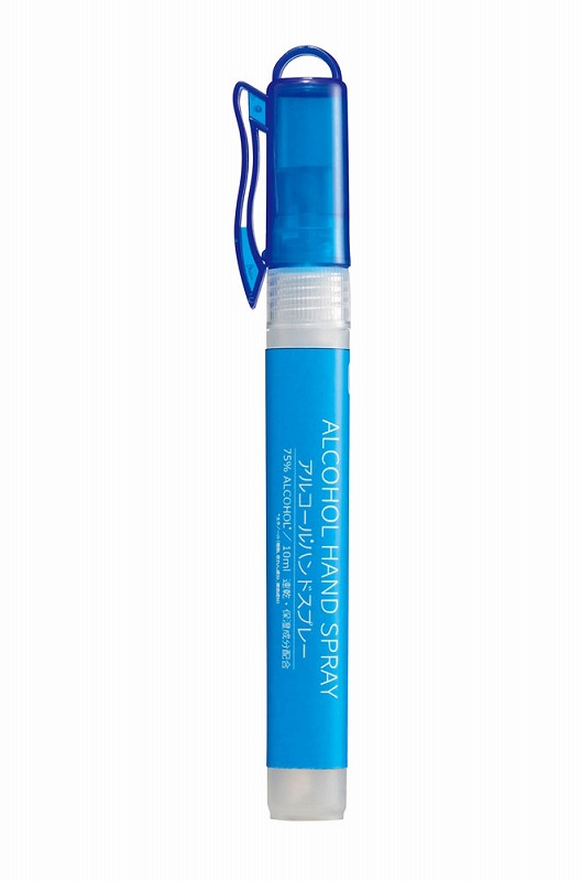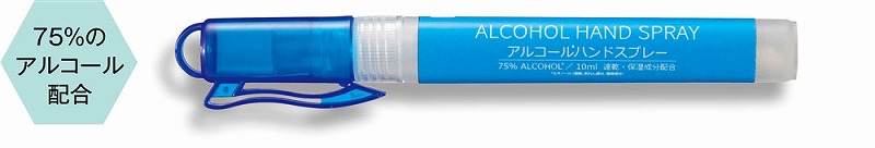 ペン型タイプで持ち運びなどにも便利な75%アルコール配合のハンドスプレーです。