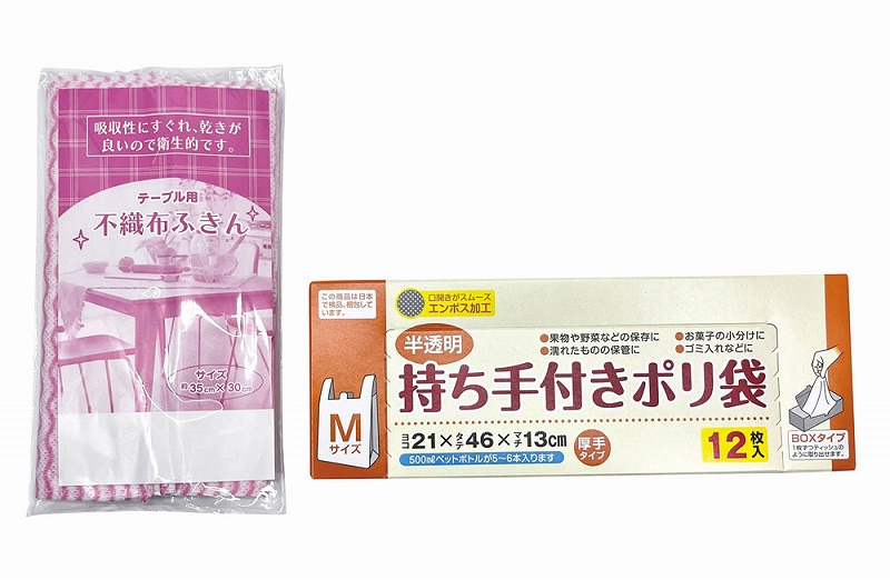 [セット内容] ・不織布ふきん3枚入り(約35×30cm)×1 ・ストックバッグMサイズ7枚入り×1 ・持ち手付きポリ袋Mサイズ12枚入り×1