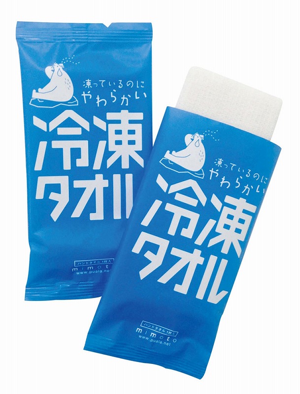 未開封のまま冷凍庫で凍らせて使うウェットタオルです。タオルの繊維同士がくっつかずやわらかく凍ります。