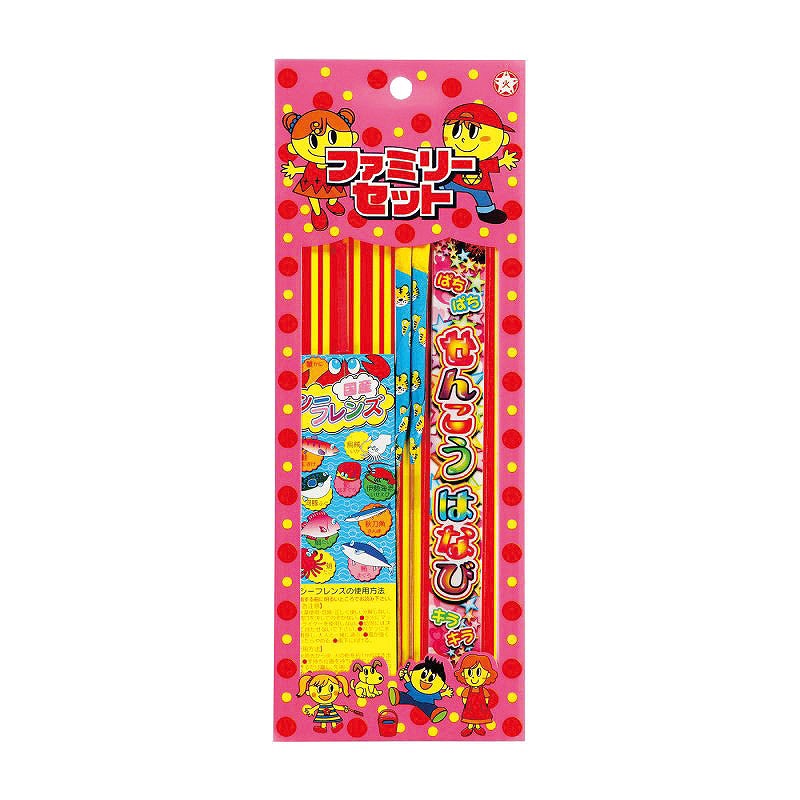[キット内容] [A賞]ハッピータイム・・・10本 [B賞]はなびーずM・・・10本 [C賞]NEWでかセットS・・・20本 [D賞]ハナビンジャー・・・20本 [E賞]ファミリーセット・・・40本 [付属] 抽選くじ×100、くじ明細書×1、抽選箱×1、告知用A4カード×1