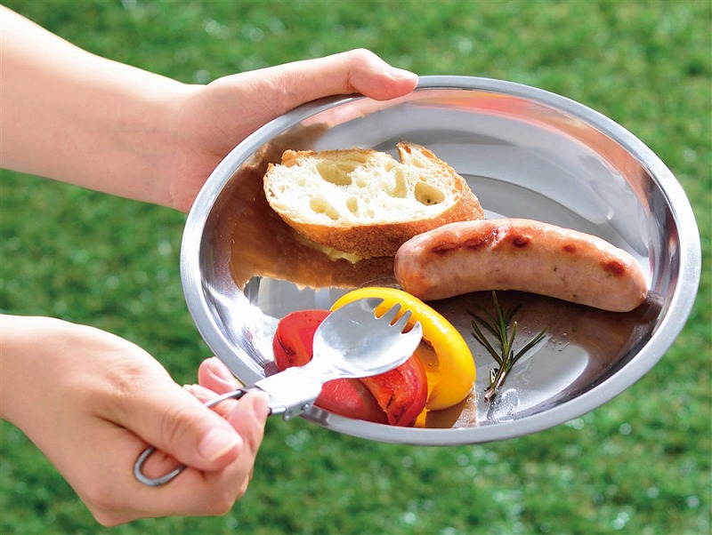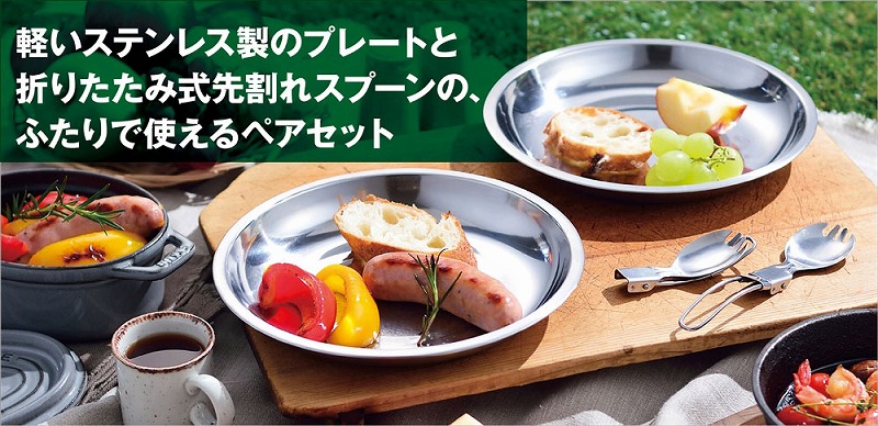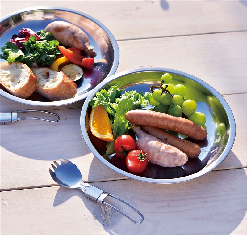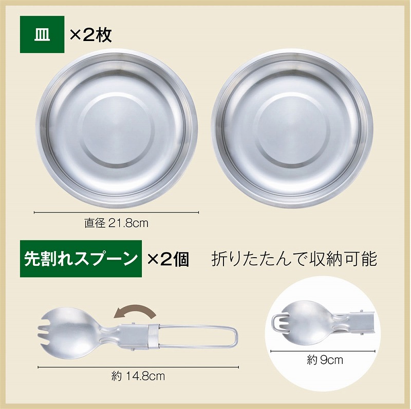プレート/直径21.8cm 高さ2.5cm 先割れスプーン/全長約14.8cm(使用時) 全長約9cm(折りたたみ時)