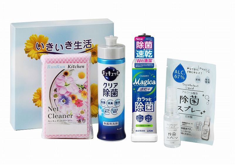 スポンジ・台所用洗剤・ラップ・アルミホイルなどのギフトセットをまとめたカテゴリです。500円以下の販促品・景品向け、1000円以上の記念品向け、2000円以上のギフト向けなどご用意しております。