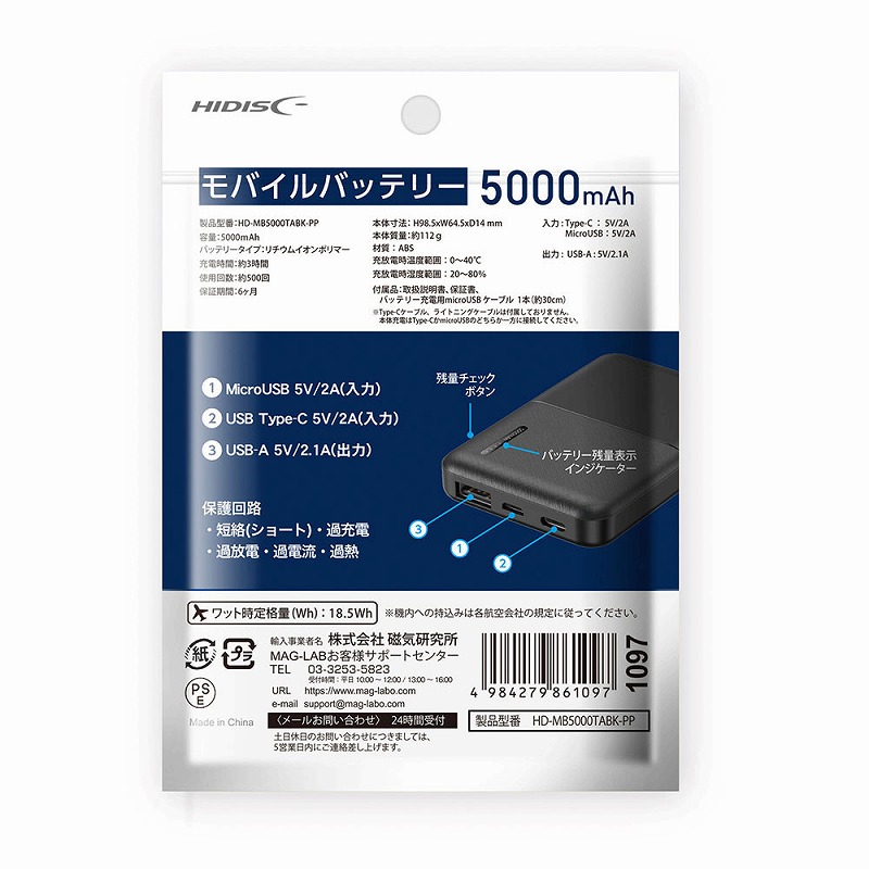 容量 5000mAh