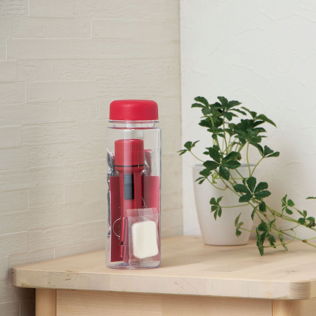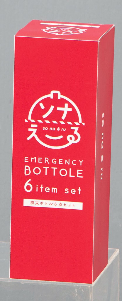 防災ガイド、ボトル:約直径6.5×19.5cm(容量 500ml)、ホイッスル、アルミブランケット(約140×70cm)、圧縮タオル LEDライト