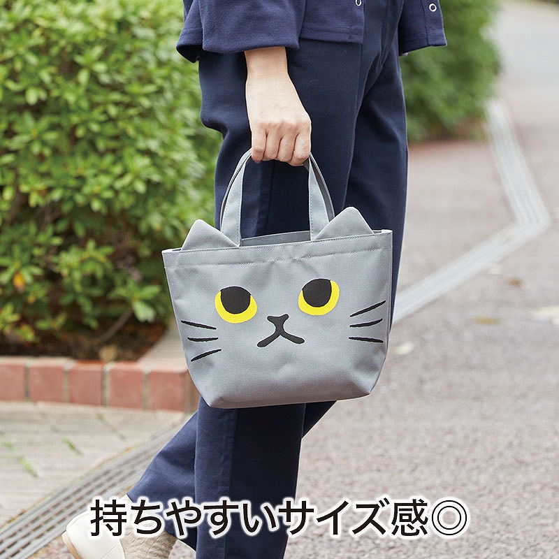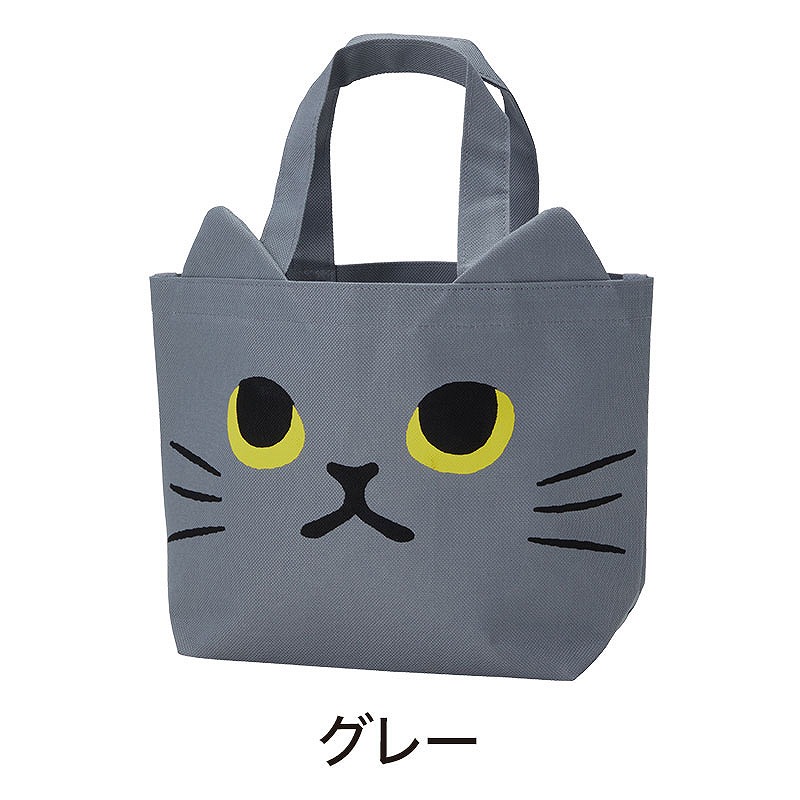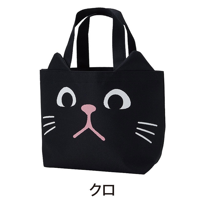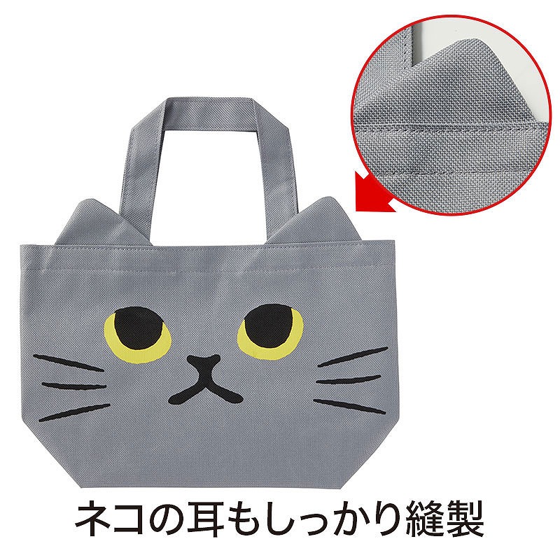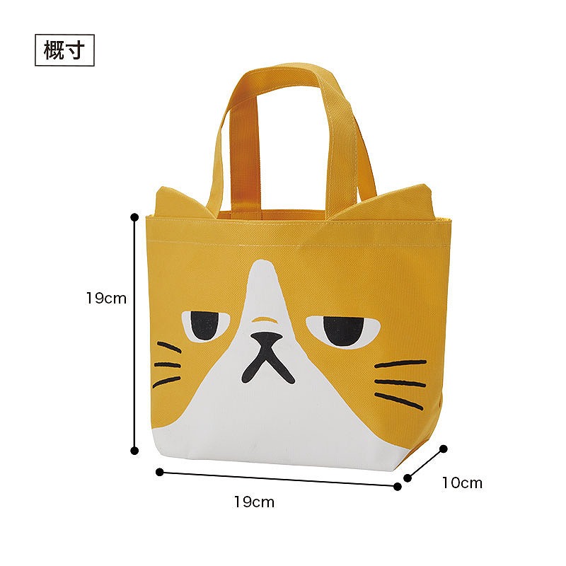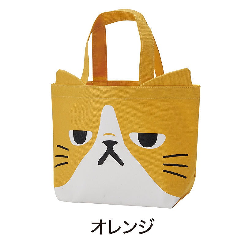 注目度・話題性、共に間違いナシ!のザ・猫バッグ♪ オレンジ・黒・グレーの3種取り混ぜ。 イメージした品種にあわせて、ピョコっと飛び出た耳の形にまでこだわりました。 動物病院名等の「名入れ」を加えた上での配布・販売にもご利用いただけます。 染色堅牢度試験も実施しており、しっかりしたつくりです。 サブバッグとして使いやすいサイズなので、気軽に普段使いいただけるアイテムです♪