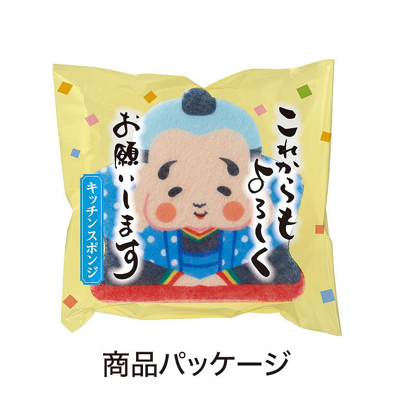 幸運を招くシンボルとされている「福助」のキッチンスポンジです。 複数並べて店頭に配置すればディスプレイ映えし、多くの人を惹きつけてくれること、間違いなしです♪ パッケージには、「これからもよろしくお願いします」とのメッセージをデザイン。 渡す側と、受け取る側の心をつなぐお手渡し品・配布グッズです。 もちろん、実用性はバッチリ! 受け取った方の期待を裏切りません。