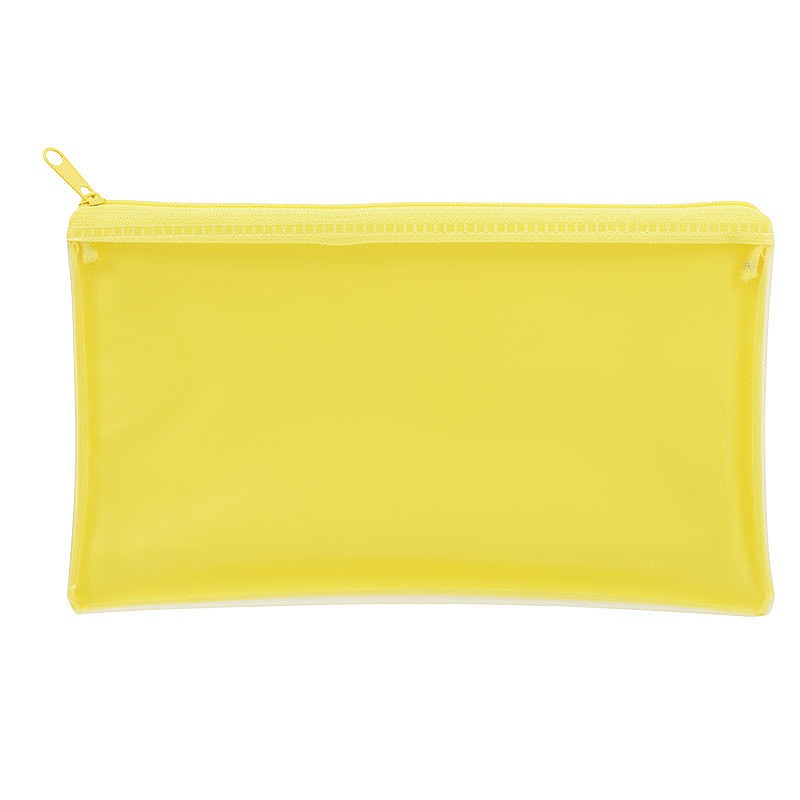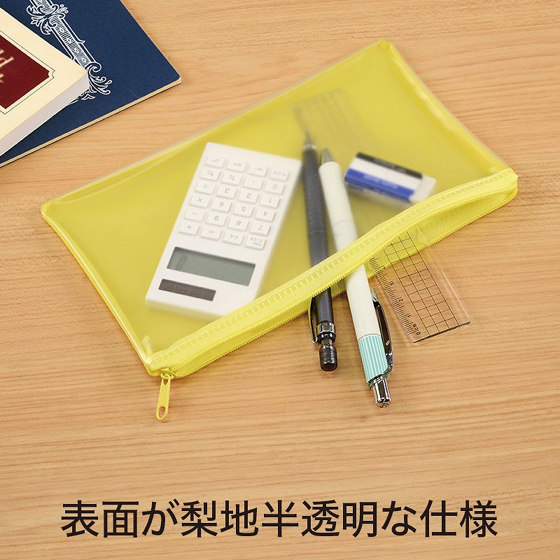 ペンケース、チケットケース、集金袋等、様ーな使い道が人気のミニポーチです。 PVC素材で、汚れも楽に拭き取れるので、 コスメやアメニティケースとしても、お手入れが簡単で便利です。 表面は梨地の半透明で名入れも可能。 名入れした企業・団体名やメッセージが、背面のあざやかなイエローに映えます! 他色もございますので、あわせてご検討ください。 メール便で郵送も可能、比較的安価ですので、 ばらまき用としてもご検討ください。