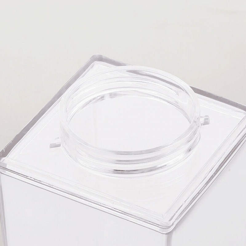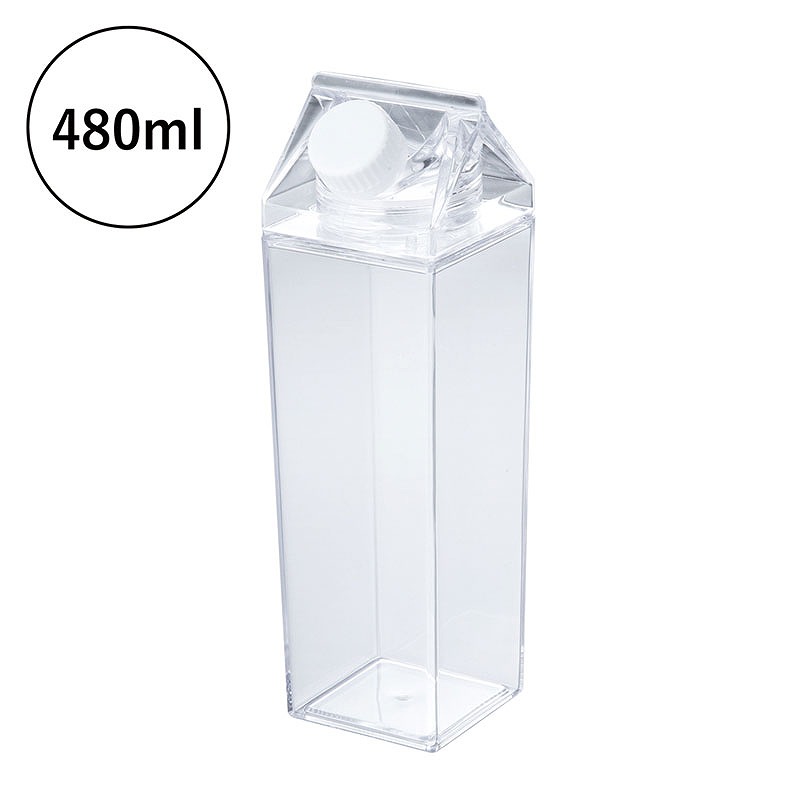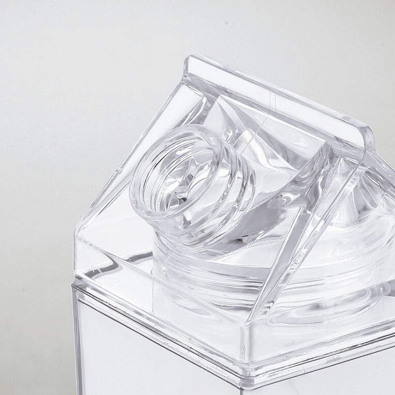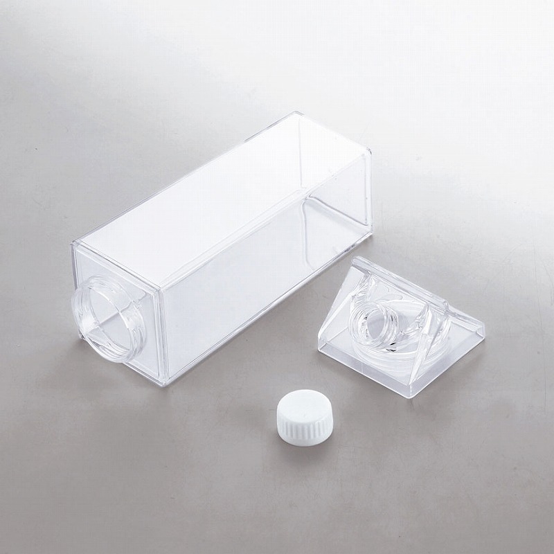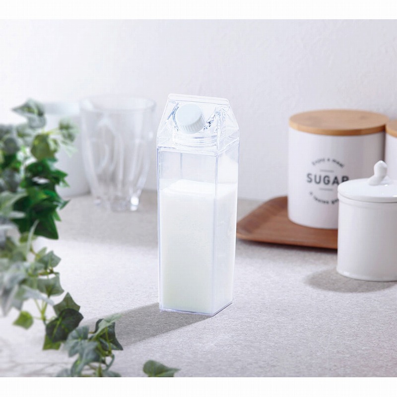 牛乳パックをモチーフにしたスタイリッシュなデザインのクリアボトル。