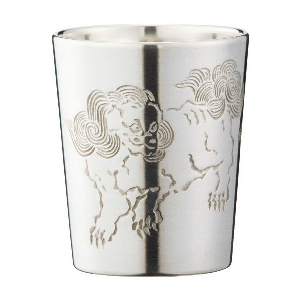 ”ロゴ、名入れ・記念品に!” 『錫製 彫金風 ぐい呑 獅子 90ml 桐箱入り (のし印刷・ギフト包装サービス)』