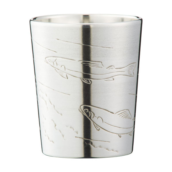 ”ロゴ、名入れ・記念品に!” 『錫製 彫金風 ぐい呑 鮎 90ml 桐箱入り (のし印刷・ギフト包装サービス)』