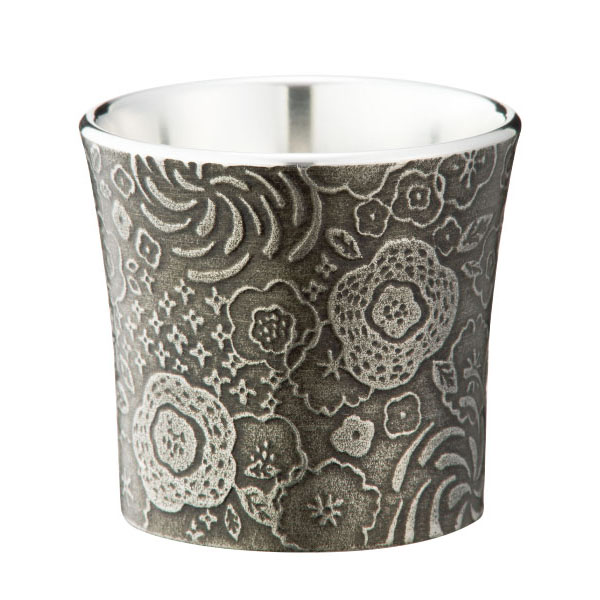 錫製ぐい呑 舞花 黒 65ml 桐箱入り (のし印刷・ギフト包装サービス)