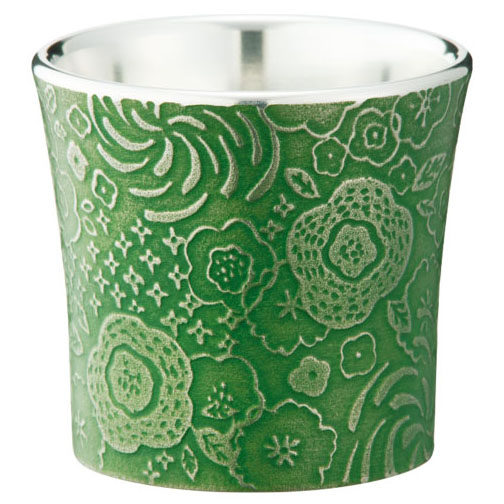 錫製ぐい呑 舞花 緑 65ml 桐箱入り (のし印刷・ギフト包装サービス)