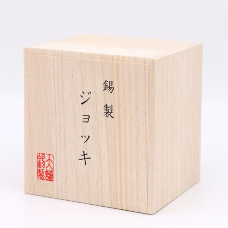 国家資格をもつ錫製品のみ製作する伝統工芸士「現代の名工」職人集団(卓越技能者2012年受賞)が錫製品。かつては金銀に並ぶ価値を持っていた錫。その錫を贅沢に使い、一つひとつ丁寧に磨きこむことによって美しくなめらかな飲み口に仕上げています。陶器に比べ1.8倍の速さで熱を移動し、50倍の速さで全体に伝える錫は燗や冷酒の器として最適です。