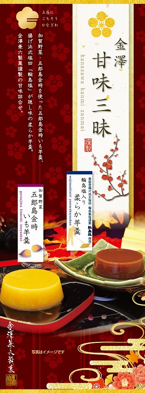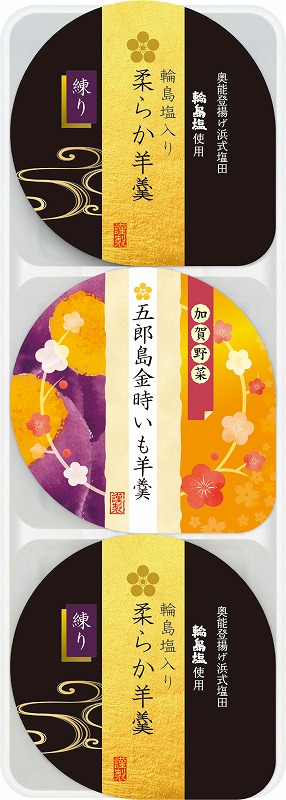 輪島塩入り柔らか羊羹 60g×2個、五郎島金時いも羊羹 60g×1個