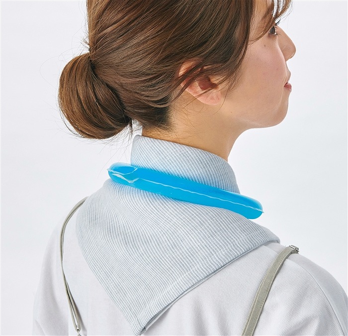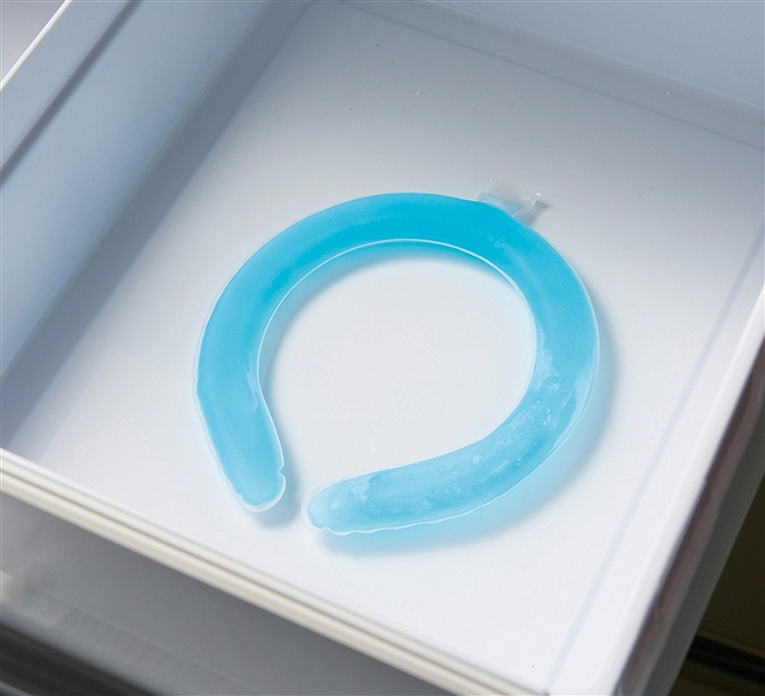 冷凍庫で凍らせてカチッとCOOLに!夏場の屋外作業やお出かけ時に活躍します。