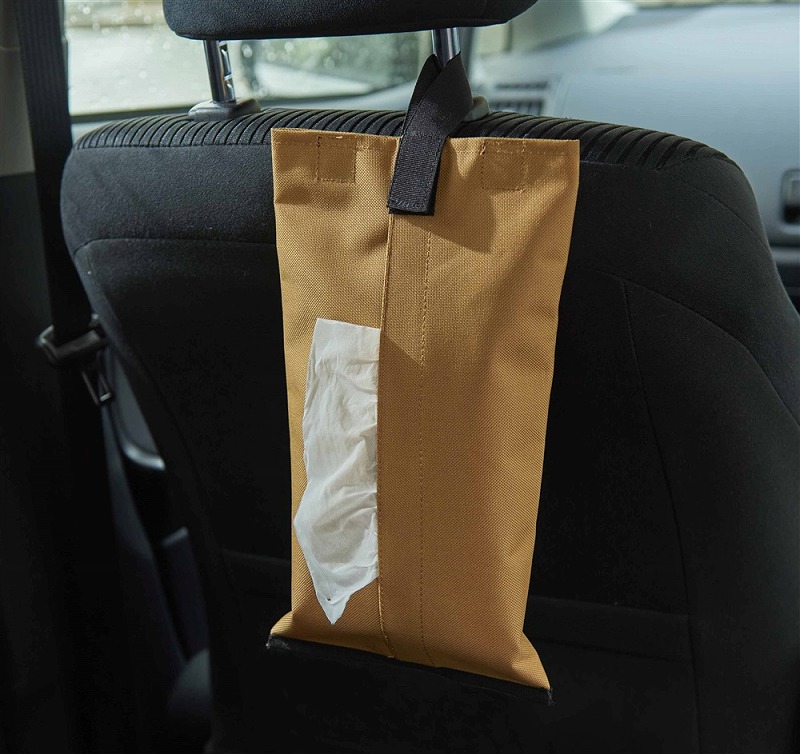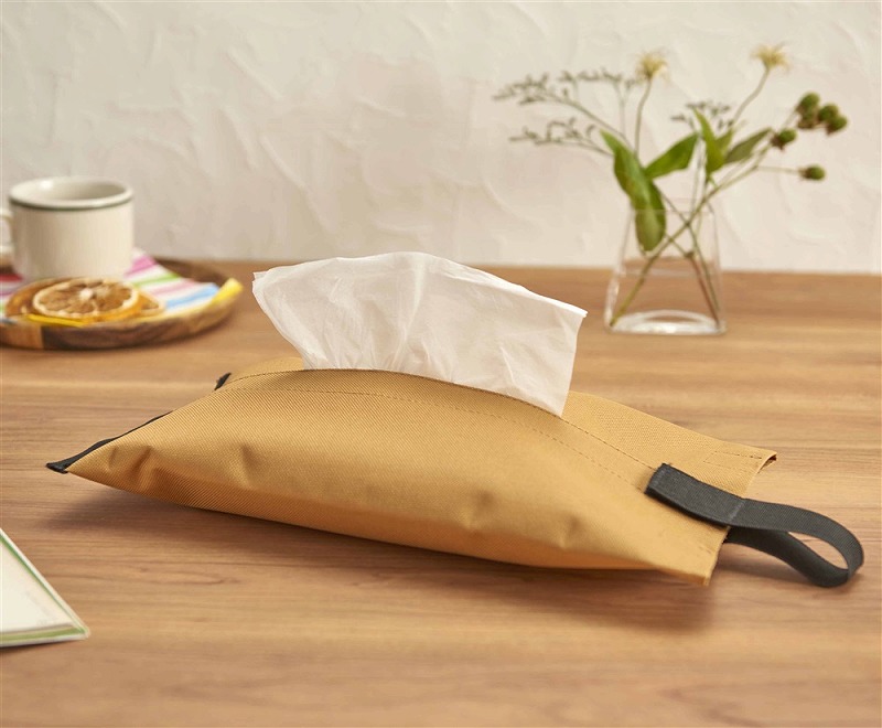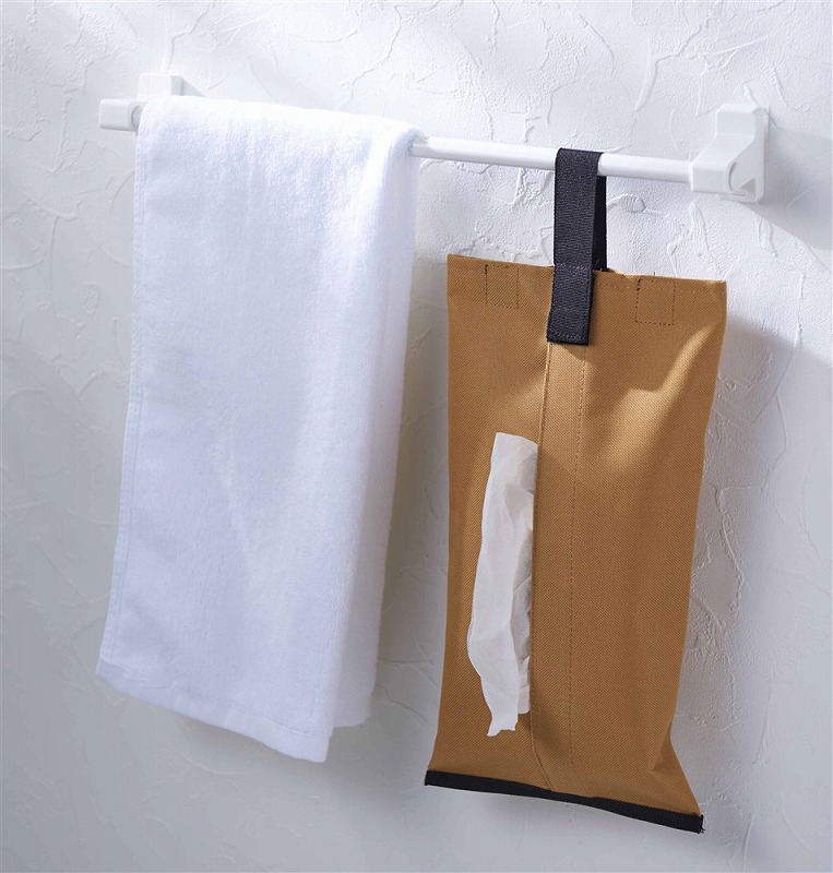 かさばらないソフトパック入りのティッシュに最適なフック付きのティッシュカバー。
