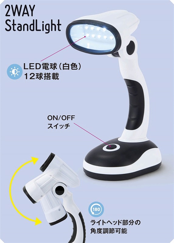 白色LED電球を12灯搭載したヘッド部分は角度調整も可能です。