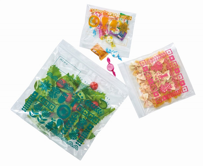 3種類の異なるサイズのセットで食品の保存や、雑貨の仕分けができる便利な保存パック。透明なので中身の確認がすぐにでき、便利なメモスペースもあります。
