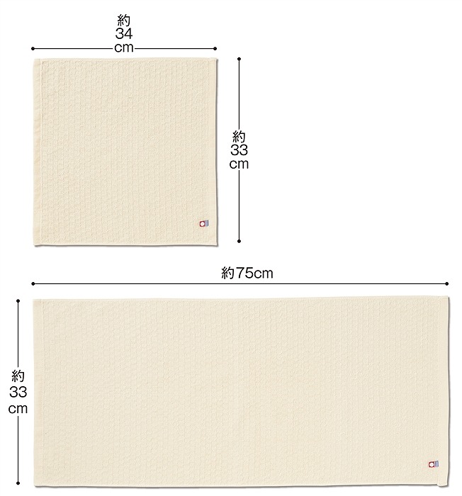 ハンドタオル/約34×33cm フェイスタオル/約75×33cm