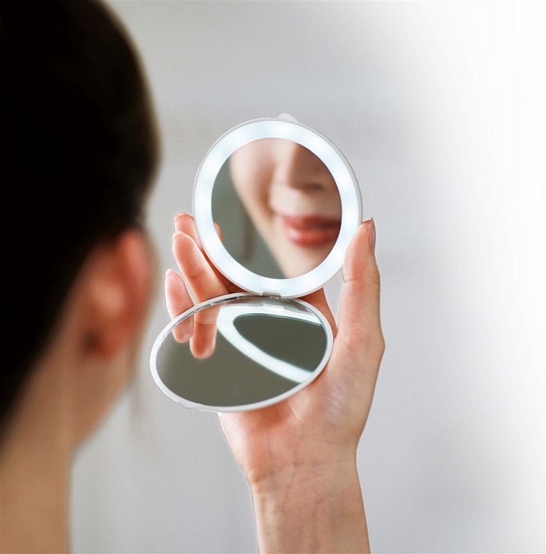 拡大鏡/平面鏡の2WAY仕様。お出かけ先でもメイク直しに抜かりなし!