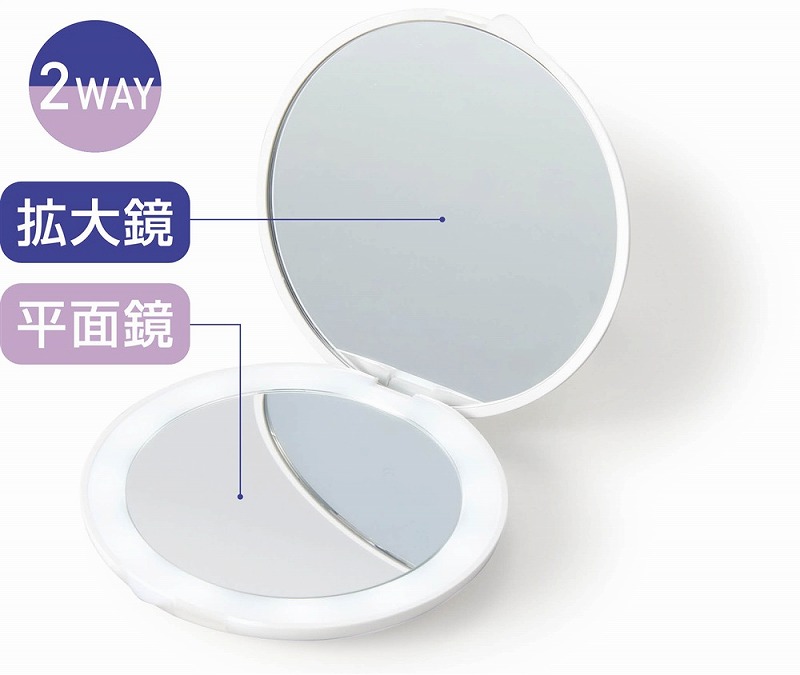 CR2032ボタン電池2個使用(別売) 平面鏡・拡大鏡搭載