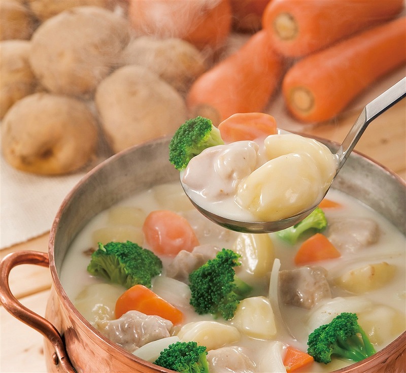 <セット内容> 北海道産じゃがいも約240g(Mサイズ3個) 北海道産玉ねぎ約400g(Lサイズ2個) エスビーおいしさギューッととけ込むシチュークリーム140g