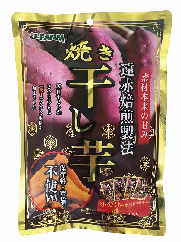 高温蒸気で一気に蒸したさつまいもを天日干ししたあと遠赤外線でじっくり焼き上げ、さつまいもの自然の甘みが凝縮された焼き干し芋です。自然の甘みで食べやすく、お茶の間やオフィスでいつでもお気軽にお楽しみ頂けます。保存料・着色料不使用です。食べやすい一口サイズです。