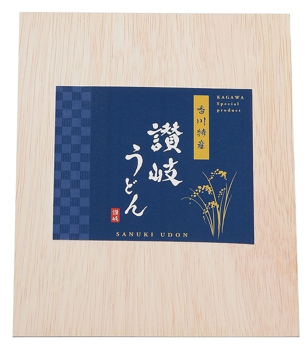 贈答用にぴったりの木箱入り讃岐うどん。木箱はオリジナル印刷も可能です。1色印刷~フルカラー印刷まで対応できます。