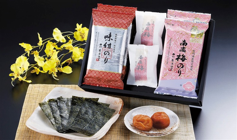 <セット内容> 紀州産和歌山県南高梅×2 味付のり8切6枚2 南高梅のり8切6枚×2