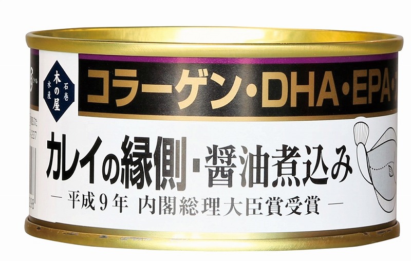 内閣総理大臣賞を受賞した、DHA・EPA・カルシウム・コラーゲンたっぷりなカレイの縁側缶詰です。柔らかい身とシャリシャリとした骨の食感を楽しむことができます。脂は全てカレイから出た脂なので、栄養素が豊富に含まれています。お酢を加えてドレッシングにしたり、炒め物や卵焼きなど様ーなお料理にご活用ください。