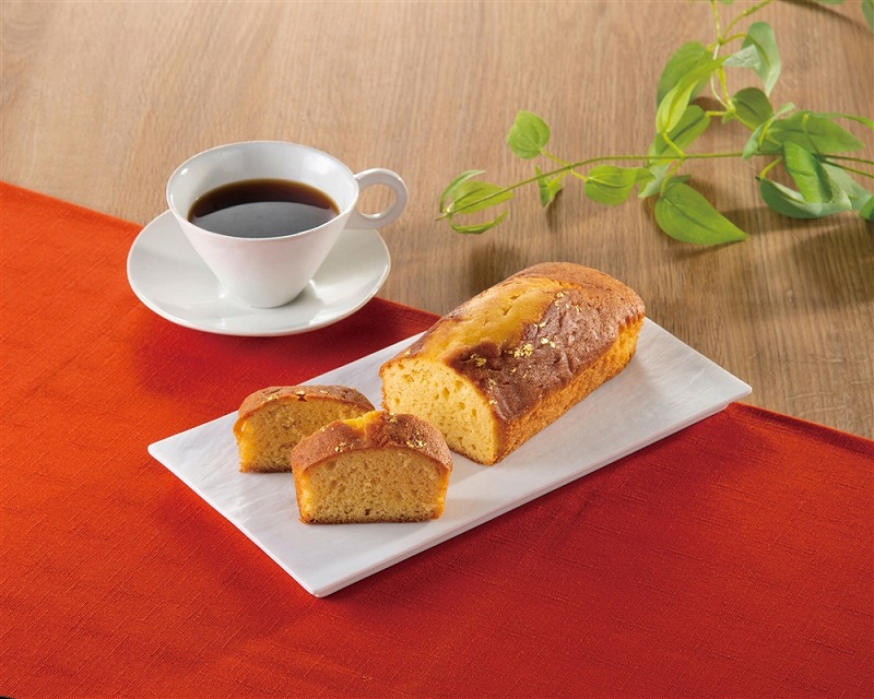 京都の堀金箔粉を贅沢にまぶしたパウンドケーキです。素材にこだわって焼き上げたパウンドケーキは、シンプルながらも、しっとりとした食感の味わいです。生クリームやフルーツなど添えてちょっとリッチなアフタヌーンティーなどお楽しみください。