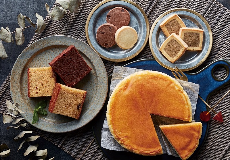 しっとりきめ細かくふわふわな食感が好評のチーズケーキに、スイートチョコレート、カカオマス、ココアを加えたリッチな味わいのチョコレートケーキ、洋酒漬レーズンを練り込んだ生地をじっくりと焼き上げふわふわに仕上げた、甘酸っぱいレーズンと風味豊かなブランデーの相性が抜群なフルーツケーキと3種類のクッキーの詰め合わせです。