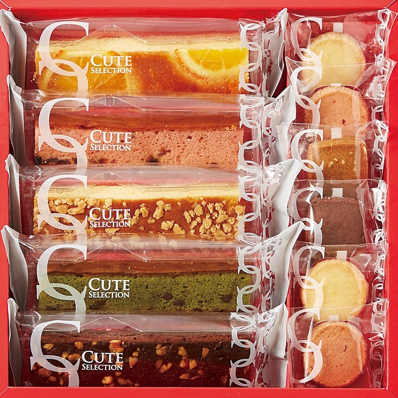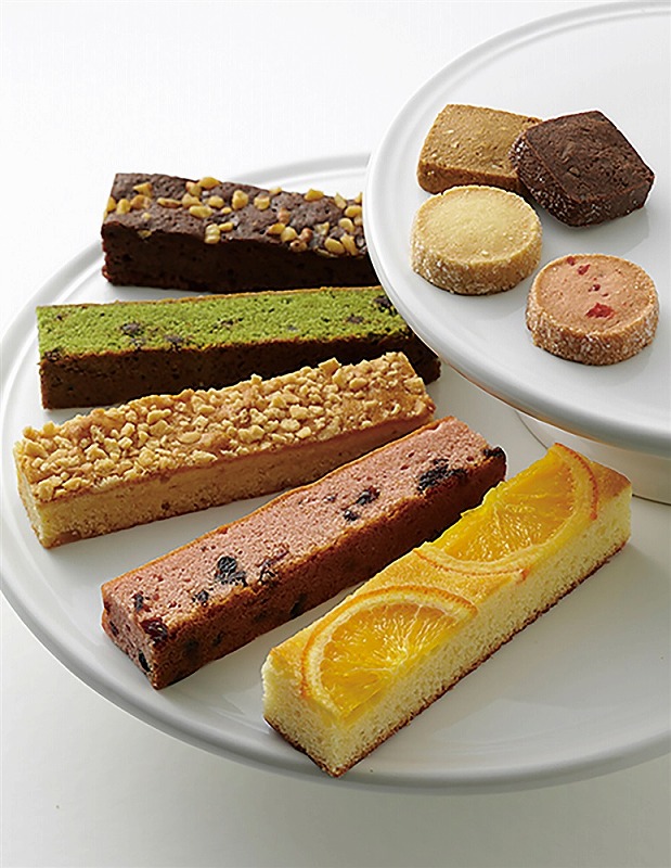 ポップでカラフルなスティックケーキ5種類とクッキー4種類が入っています。濃厚なチョコレートケーキにローストしたクルミが香ばしいニューヨークブラウニー、京都府産宇治抹茶とビターチョコレートのほろ苦い大人のハーモニーを奏でる抹茶ショコラケーキなど、食べやすい大きさも手伝ってつい手が止まらなくなる商品です。
