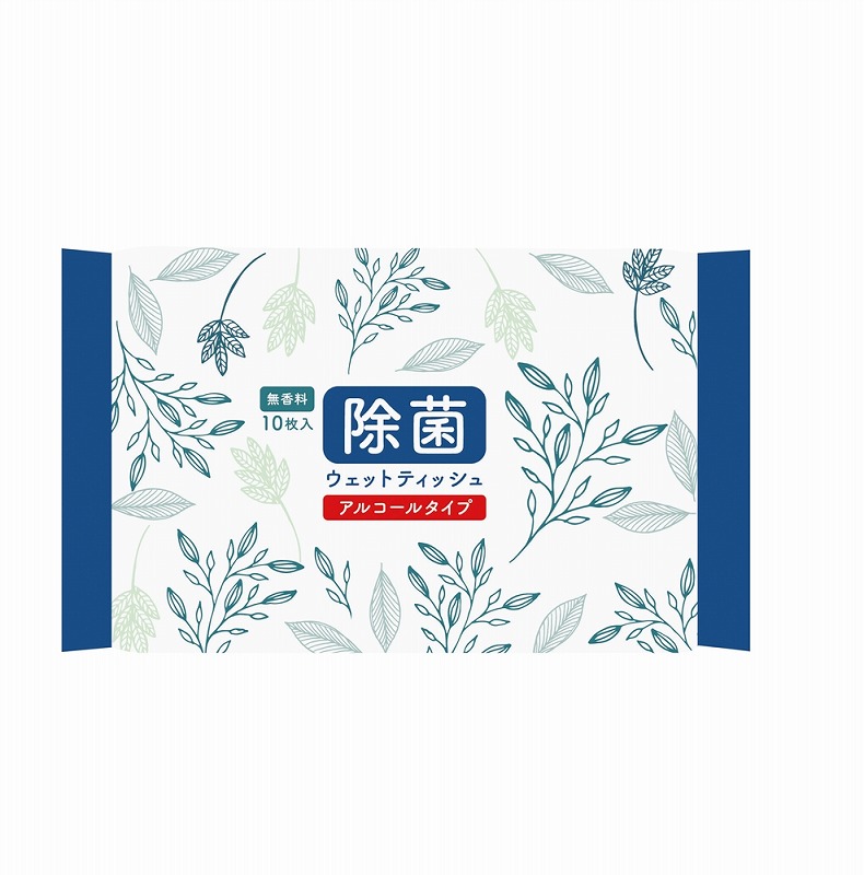 アルコールタイプの除菌ウエットティッシュ10枚。携帯用のコンパクトサイズ。無香料でどなたでもお使いになれます。