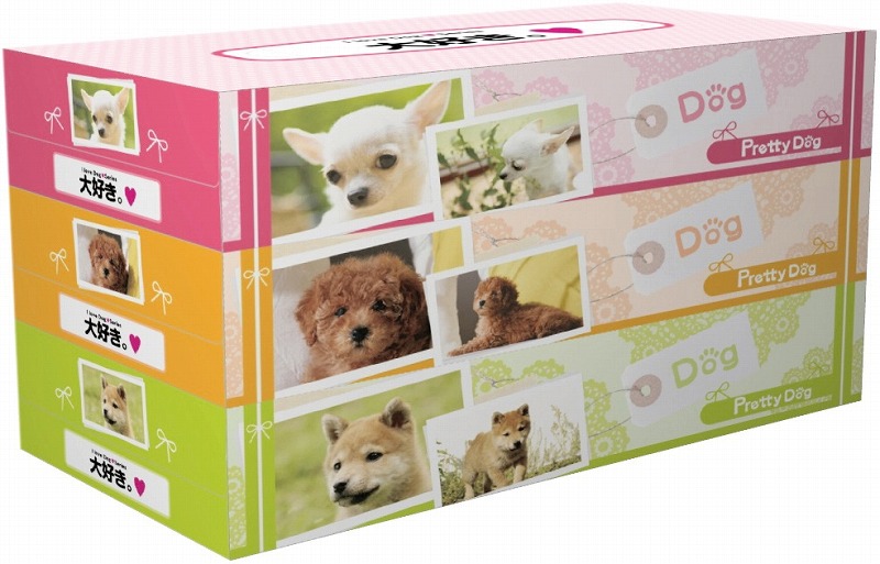 (同一商品3カートン以上可) ・天然パルプ100%のクオリティの高いティッシュです。 ・癒しを与えてくれる人気のペット(犬)をパックにしました。