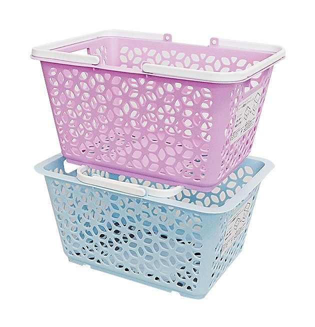 左右のハンドルを内側に順番に倒す事により、同じバスケットを積み重ねて使う事ができます。小物の収納に最適なバスケットで持ち運びもでき便利です。