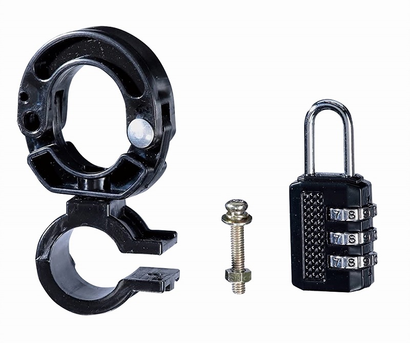 ハンドルパイプが直径20~23mmまで取り付け可能です。 ハンドルポストやハンドルバーに取り付けてヘルメットを保管できます。 ダイヤル式の南京錠がついているので、盗難防止にもピッタリです。 南京錠はお好みの3桁の暗証番号に設定できるマイセット機能付きです。