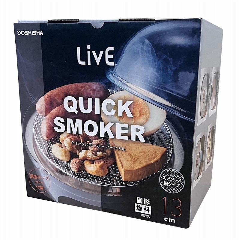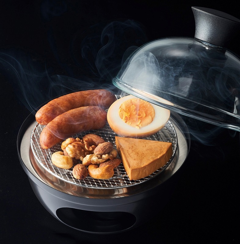 ひとり飲みのプライベート空間をお楽しみいただくためのスモーカーです。 パーソナルには「個人用」という意味と「小型で手軽な」という意味が含まれており、 直径9cmの網でひとり飲みのお供にちょうど良い量の燻製がつくれます。