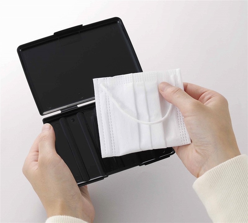 マスクを半分に折って収納します。厚さ約1.5cm/重量約29g(※必ず現品でご確認ください)でポストインにも最適。抗菌性試験実施済み(JISZ2801「抗菌加工製品ー抗菌性試験方法・抗菌効果」)