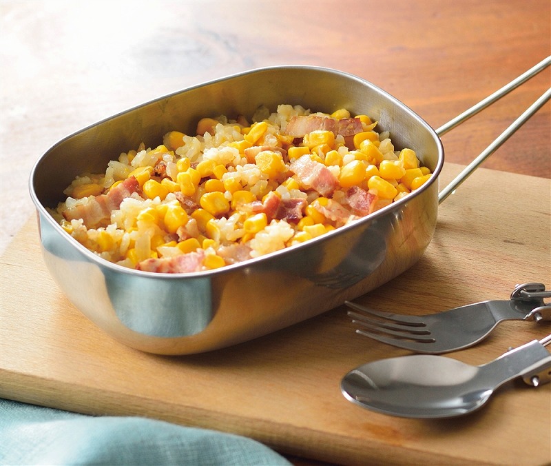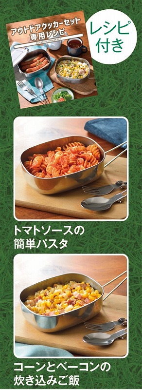 直火もOK!話題のソロキャンプにもぴったりのサイズ感。ハンドルは折り畳み可能です。さらに折り畳み式のスプーン&フォーク、おまけにおいしいレシピ付き。