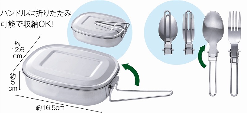 本体/約16.5×12.6×5cm(ハンドル含まず) スプーン/全長約15.5cm(使用時) 全長約9.2cm(折りたたみ時) フォーク/全長約15.5cm(使用時) 全長約9.2cm(折りたたみ時)
